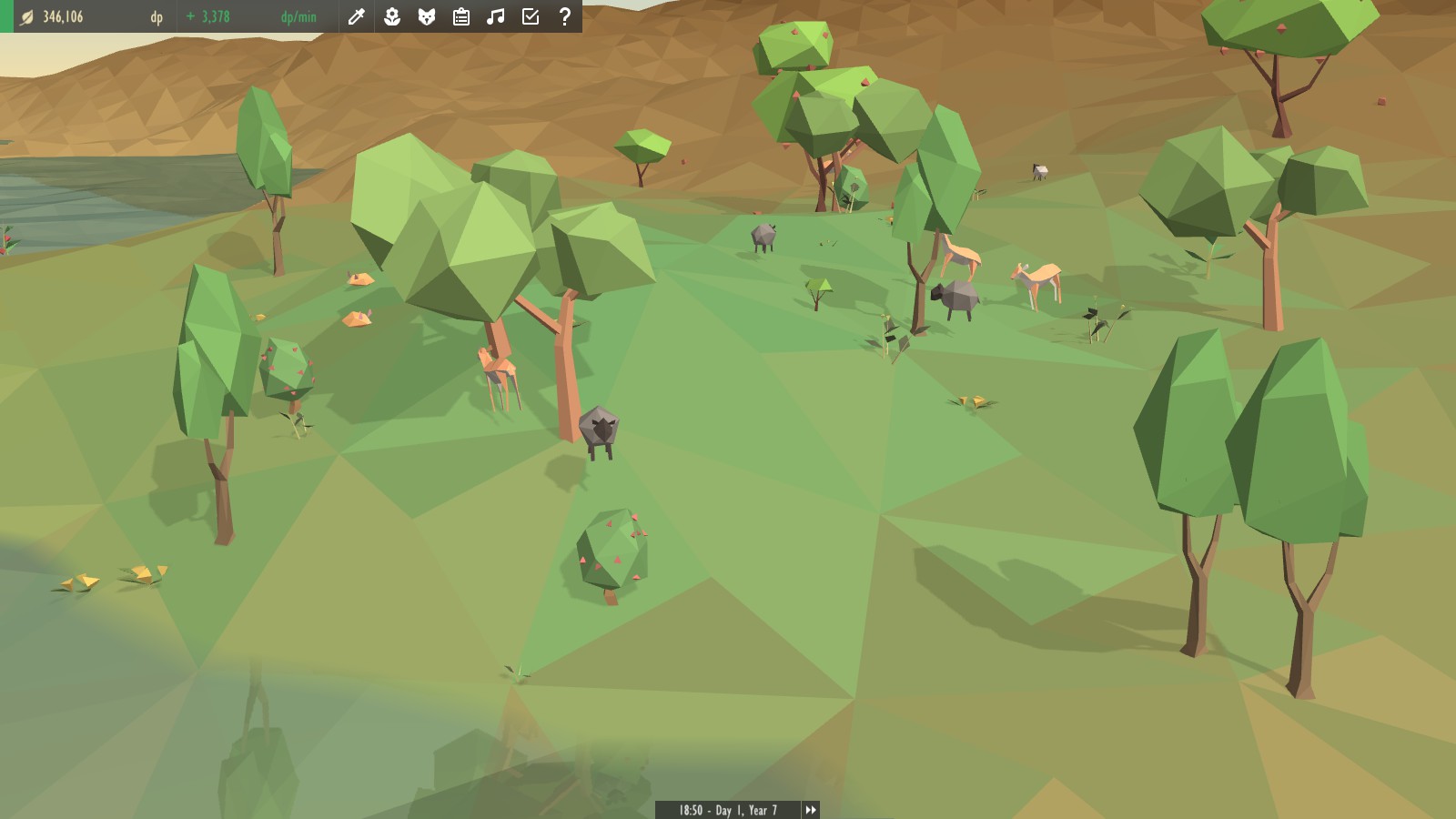 土地と水しかない大地にあなただけの自然を創るサンドボックスゲーム。登場するには植物(花やハーブ、樹木など)と動物、石(岩)などしかなく、しかも最初に解除されているのは極わずか。そのわずかなものを繁殖させ、遺伝子操作をして、別種をつくり、更に別の動植物を解除していきます。またタスクもあり、それをクリアすることで解除されるものもありますので積極的にクリアしていきましょう。