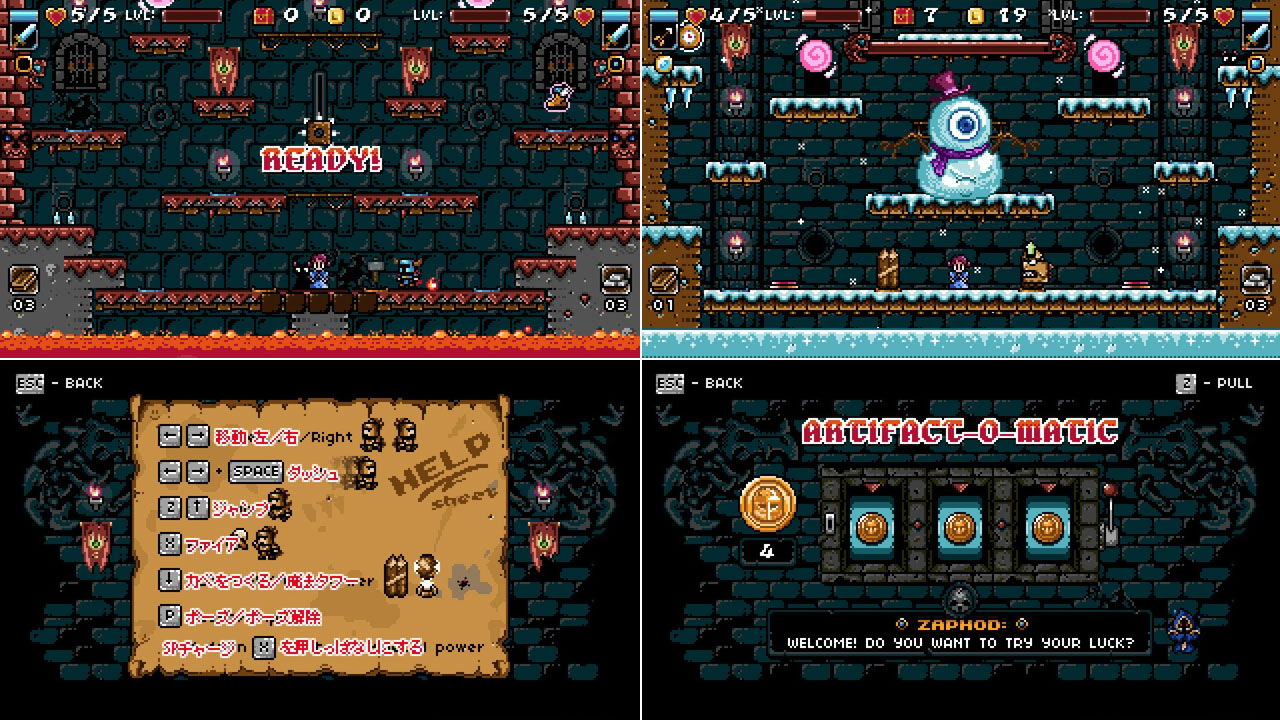 姫を守りながら敵を倒し、様々なアイテムを駆使して、ボスを倒して新たな場所への道を開くというのが最初の目的となるかと思います。ゲーム画面はステージ毎に変化はありません。