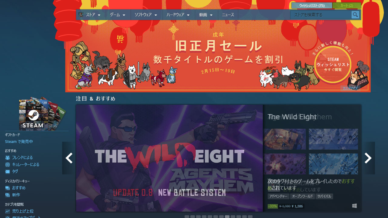 Steamの旧正月セールが明日19日までとなっています(厳密には20日午前3時までらしい)。大変短い売りだしとなっていますが、みなさんは何か購入されましたか?