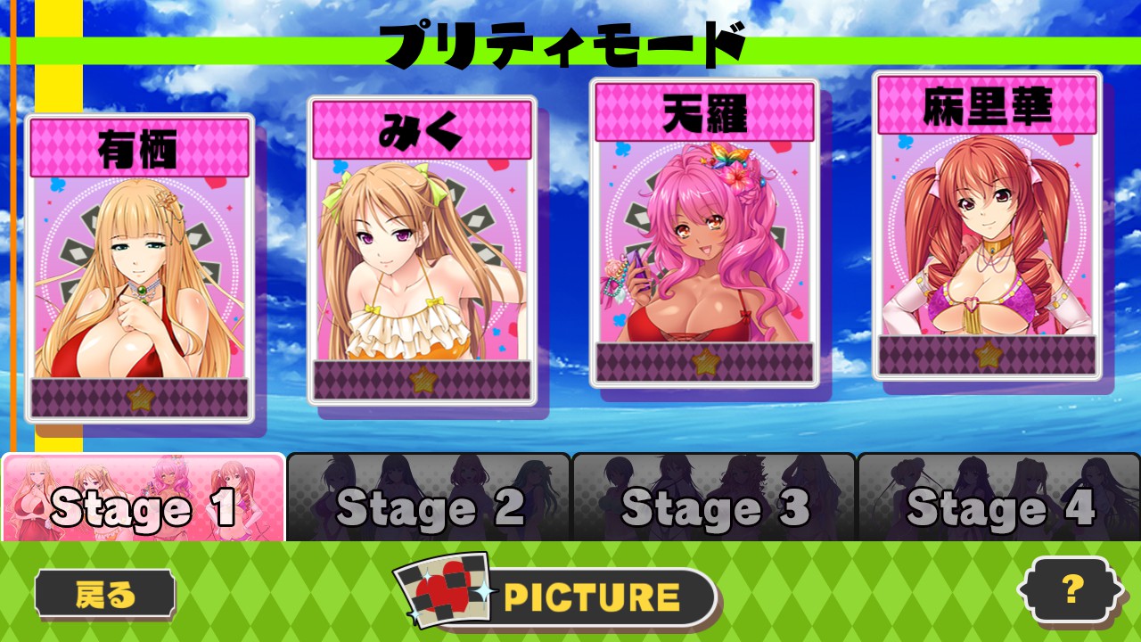 ステージは全部で4つ。各ステージ4人と対戦して★を1つずつ獲得するとPICTURE(写真)の一部分が解放されます。全員と対戦して★を全て獲得すればステージクリアとなります。