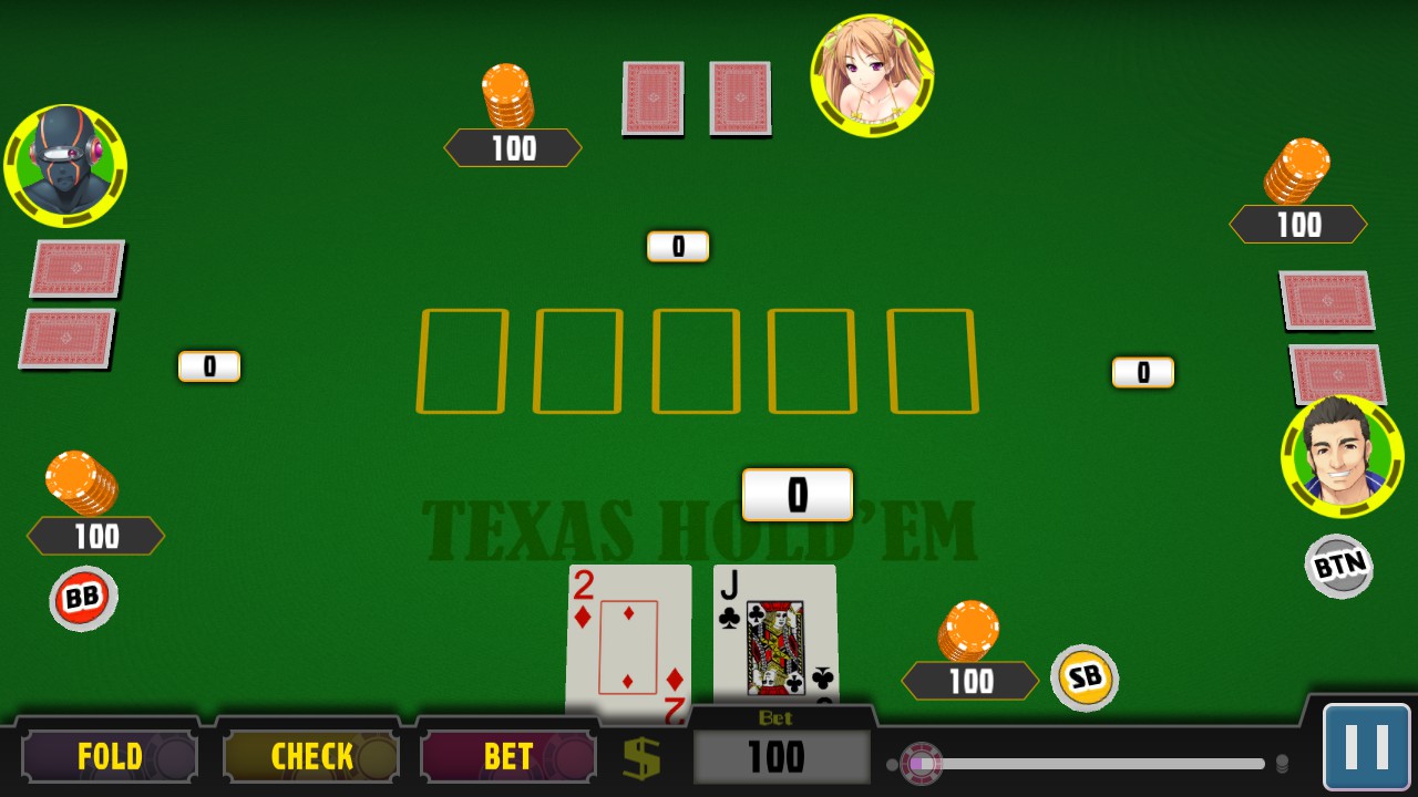 ポーカーのテキサスホールデムというルールで美少女たちと遊ぶカジュアルテーブルゲーム。日本語にも対応しており、ヘルプで遊び方、ポーカーのルールも説明されているので手軽に遊べるかと思います。