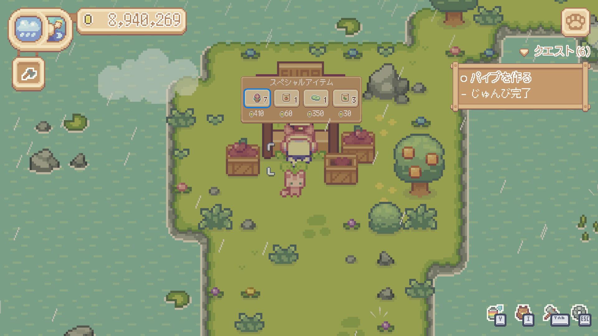 喧騒な生活から逃れ、のどかな島でスローライフを送るゲーム「Sprout Valley」はネコが主人公のゲームです。Switch版では「めばえの谷」という名前で発売されています(Steam版とはDLC含め少し違うので注意)。主人公ニコはのどかな島で農業や釣りをしたり、好きなものを作ったりして物語を進めていきます。この記事はSteam版をプレイしたレビューおよびWIKIです。DLC全部(Friends Forever、Easter)込みでのプレイとなりますので注意してください(DLCがないと一部の施設やアイテムが入手できません。軽快にプレイするためにもDLCを含めて購入しましょう)。