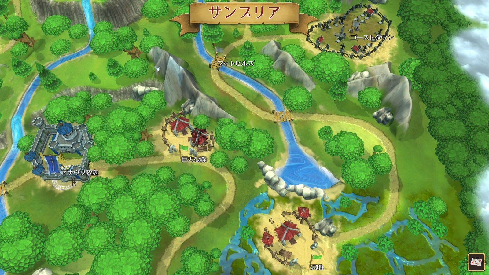 主人公はSambriaという場所で様々なクエストをこなしながら物語を進めていくことになります。マップはシームレスに繋がっているわけではなく、各地域ごとにマップが作らています。メインクエストをクリアすることで先のマップに進めることができ、一度到着したマップは選択するだけで移動することができるようになります。