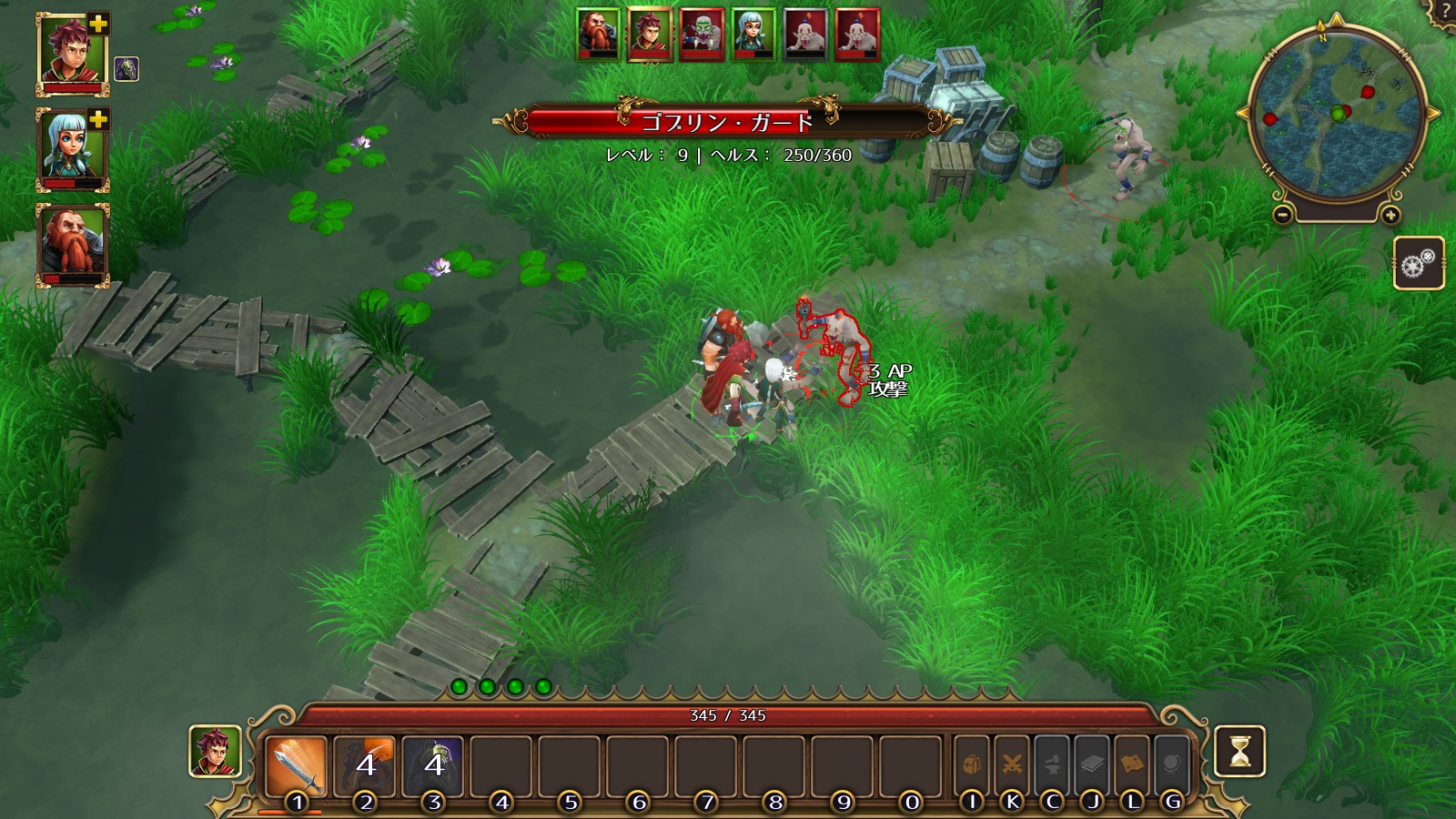 戦闘はアクションポイント(AP)を使用したものとなっており、移動、攻撃、スキルの使用においても一定のAPが必要となっています。またスキルはクールタイムがあり、毎ラウンド使用できるというわけではありません。そういう意味ではポーションやスクロールを利用して戦う必要が出てくるかと思います。このアイテムは敵がドロップしたものや道中にある箱から入手したアイテムを使ってクラフトすることもできます。