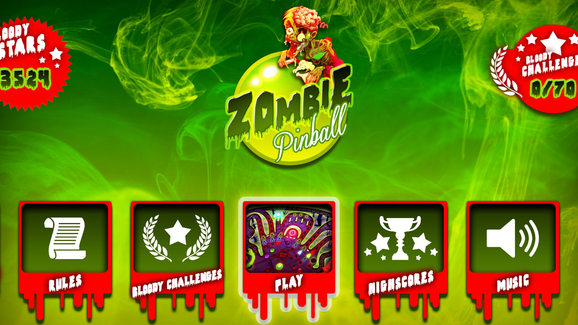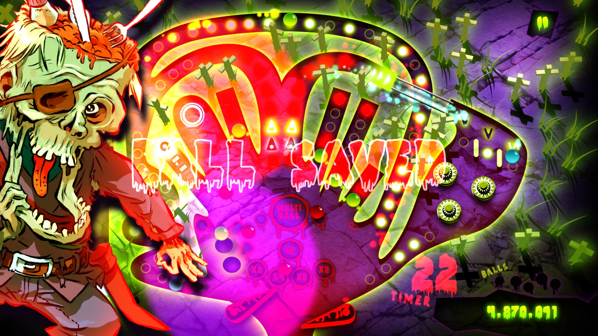 タイトル通りゾンビをモチーフにしたピンボールです。全部で7台ほどあるようですが、先の台を解放するためにはBloody Starsを集めて行く必要があります。Bloody Starは台をプレイして、右下にある得点の0.02%が変換されます(何千万単位の得点なのでこの比率でも十分です)。